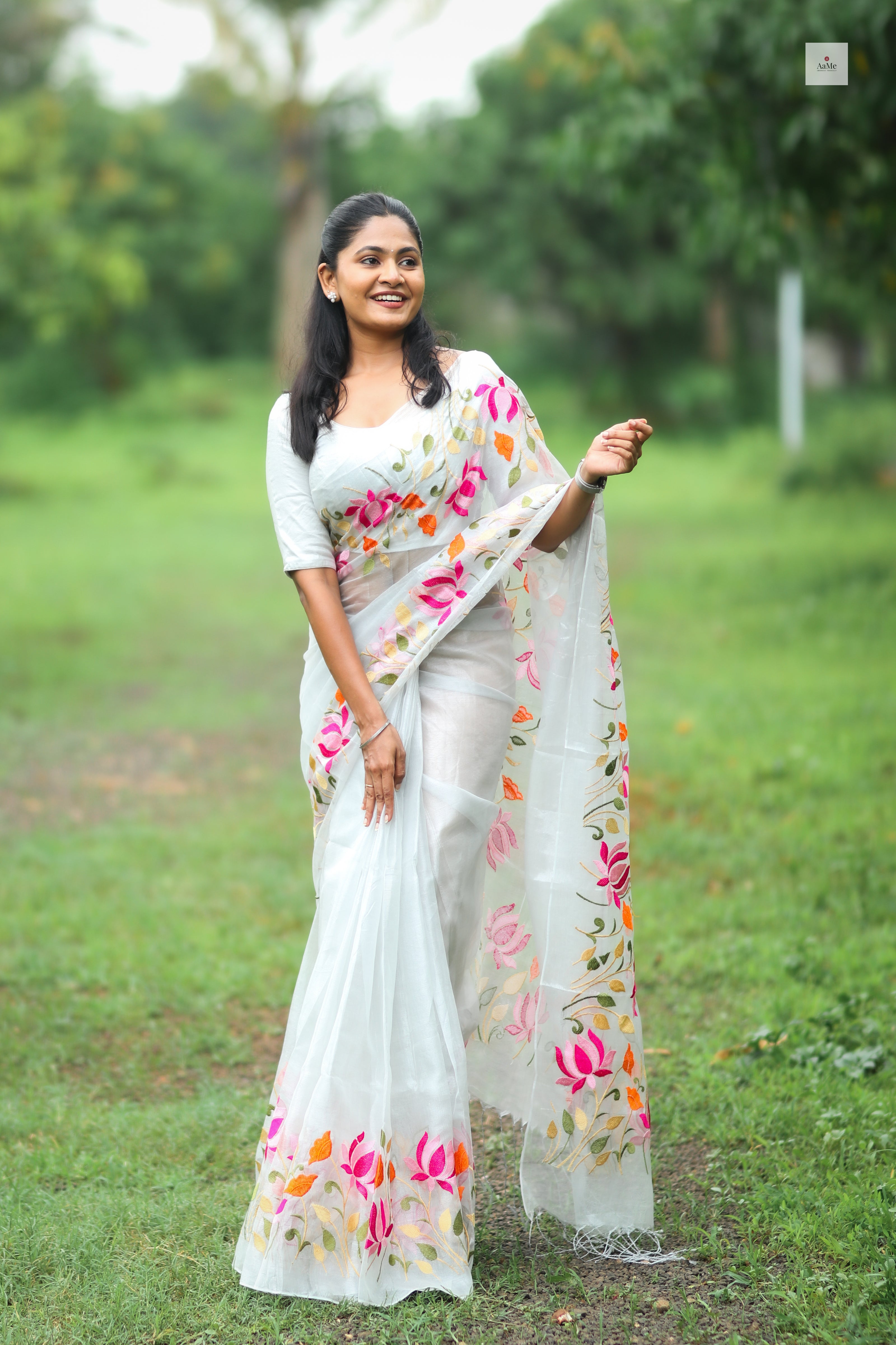 Mud Lotus ( Embroidered Mulmul Cotton Saree )