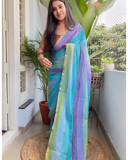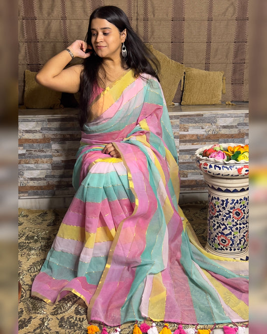 Monsoon Soiree (Multicoloured mulmul cottonSaree)