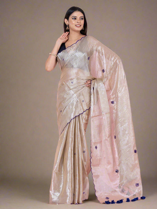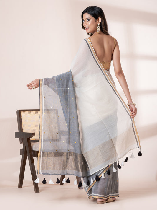 Ivory Sky ( Embroidered Ivory Mulmul Saree )
