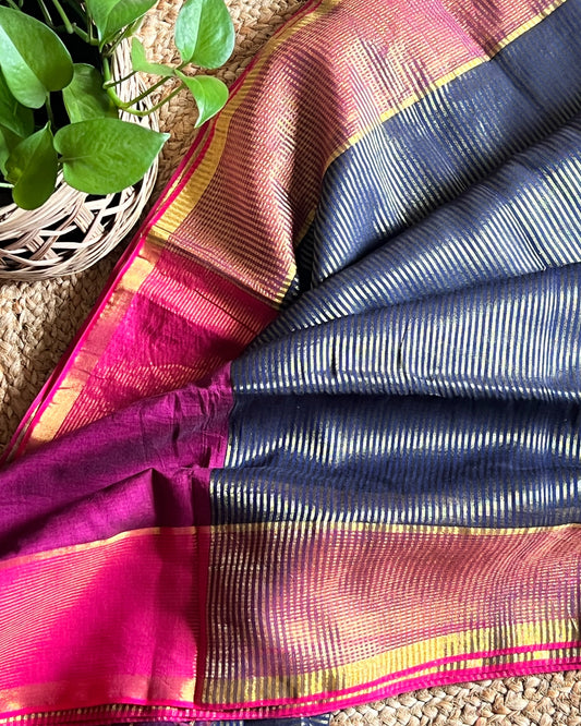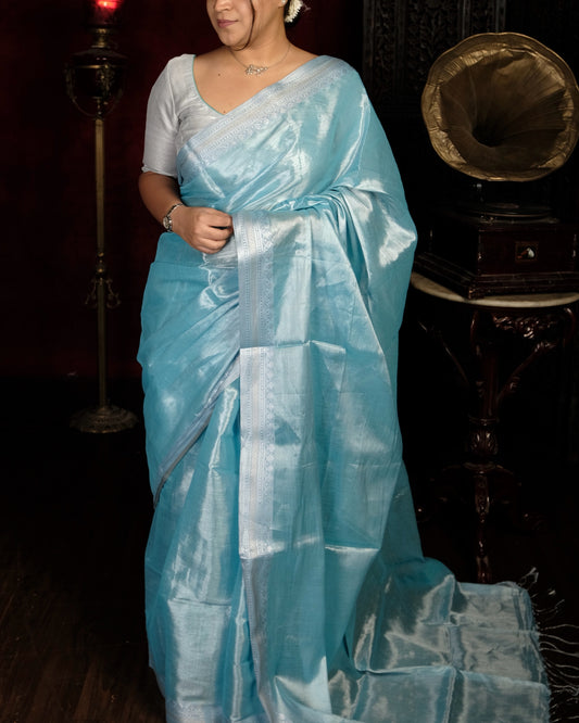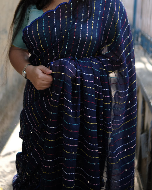 Rainbow Rain ( Embroidered Mulmul Blue Saree )