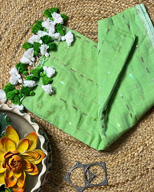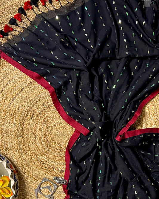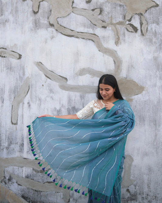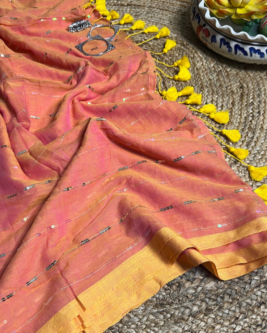 Zohra is our collection of exquisite pure mulmul cotton saree, adorned with captivating wave patterns intricately embellished with shimmering sequins. Immerse yourself in elegance and style, making it the perfect choice for the festive season or glamorous parties. These sarees offer a seamless blend of comfort and glam.
