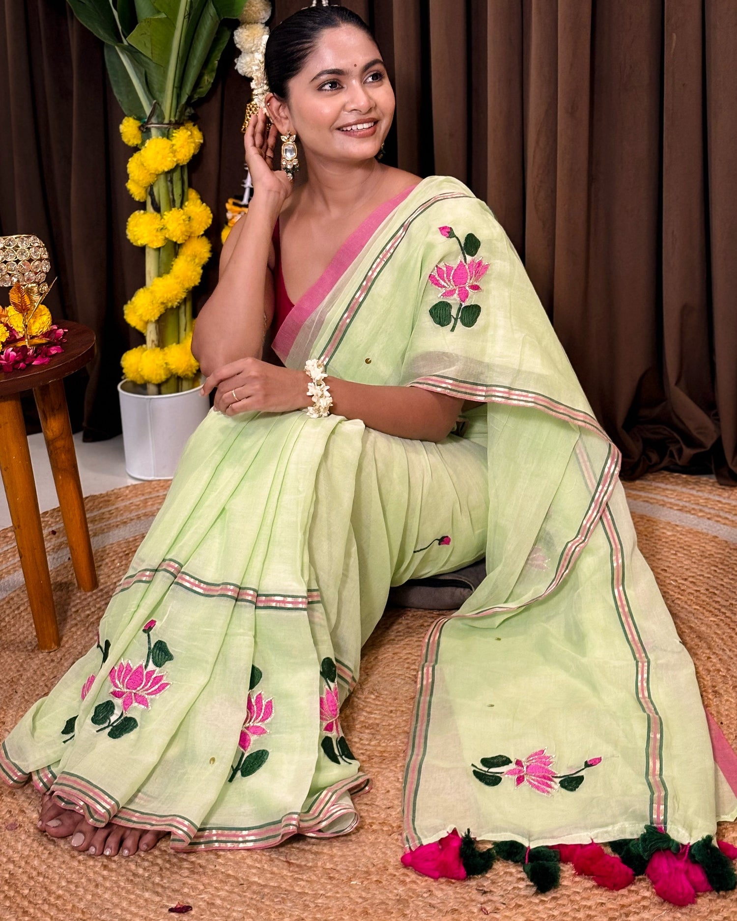 Chandrika ( Zari Embroidered Mulmul Cotton Saree )